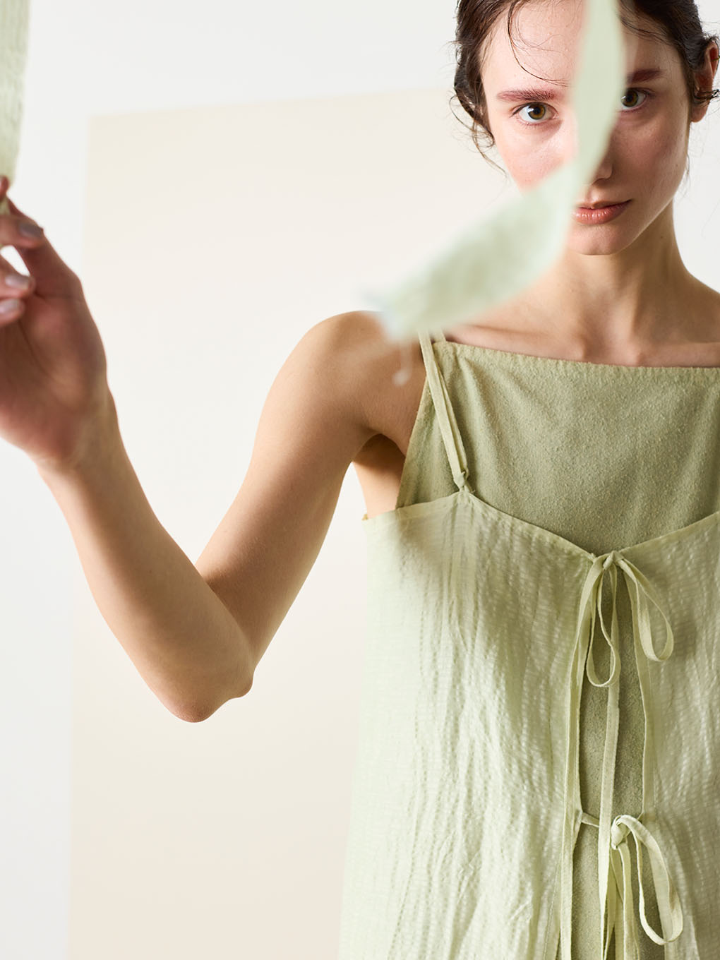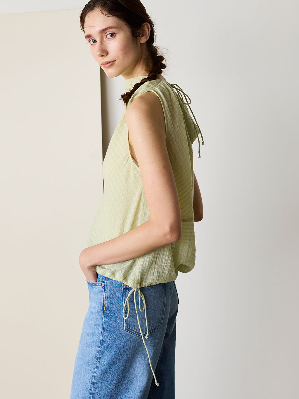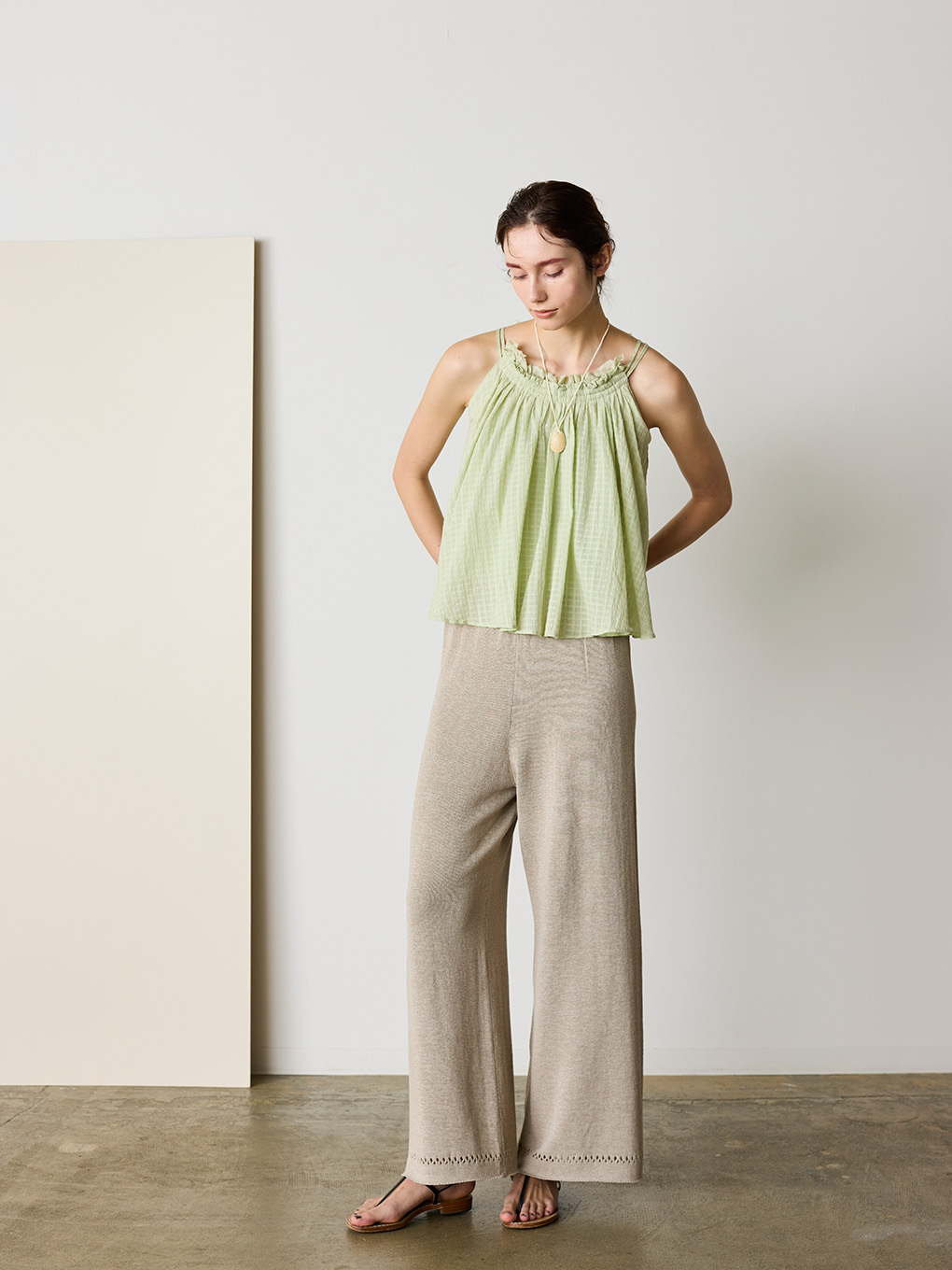 natural dye Sheer Cotton Check gather camisole
