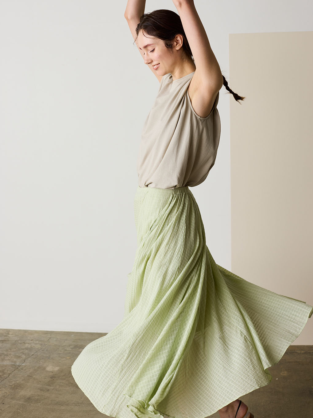 natural dye Sheer Cotton Check flare skirt